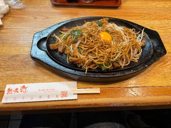 無理やり朝から連れまわされてふてっていた妻も、おいしい焼きそばを食べて機嫌が直りました