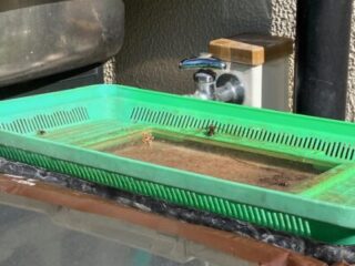 カブト虫の幼虫の飼育ケースに降り立ってから羽を休ませたかったのでしょうか