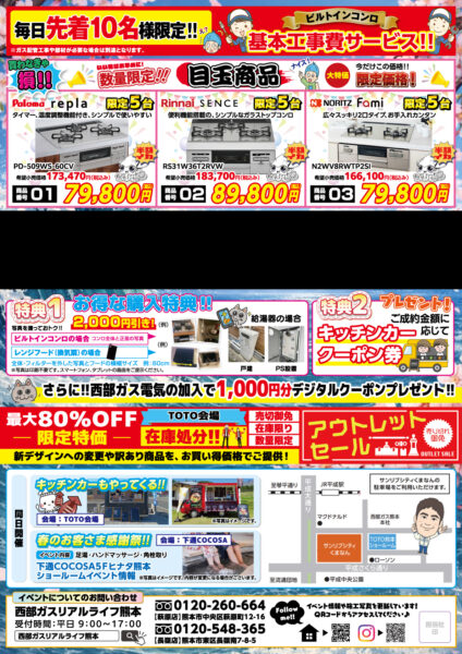 毎日先着10名様限定! ビルトコンロ 基本工事費サービス!!