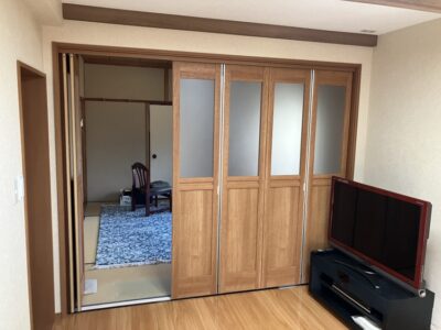 既存部分と増築の洋室の仕切りをパーテーションにして部屋を仕切ったり、開放して大空間として利用できます。